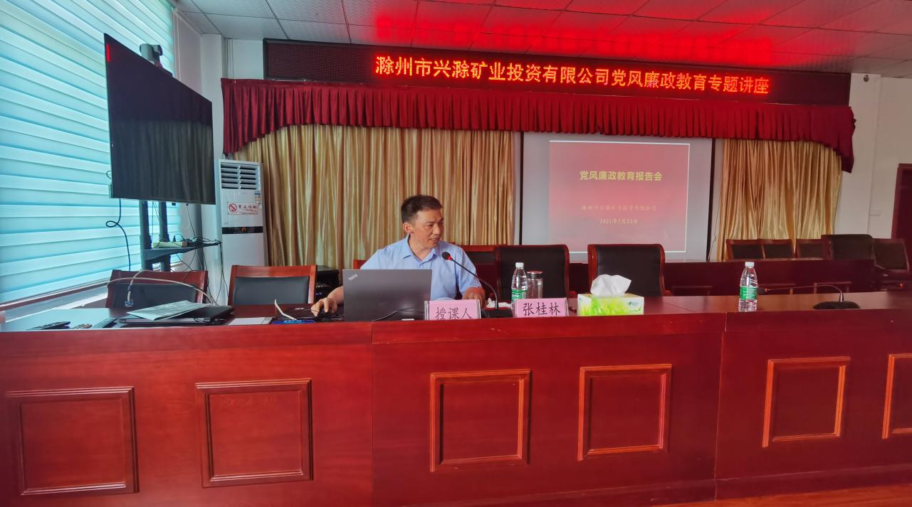 為進(jìn)一步推深做實(shí)黨史學(xué)習(xí)教育,切實(shí)加強(qiáng)公司黨風(fēng)廉政建設(shè)和反腐敗工作,促進(jìn)黨風(fēng)廉政教育在基層一線落地生根,7月23日,市礦投公司邀請市紀(jì)委監(jiān)委駐市財(cái)政局紀(jì)檢監(jiān)察組副組長張桂林赴興明礦業(yè)調(diào)研指導(dǎo)并作黨風(fēng)廉政教育專題講座。公司經(jīng)營層及相關(guān)工作人員約30余人聆聽了講座。