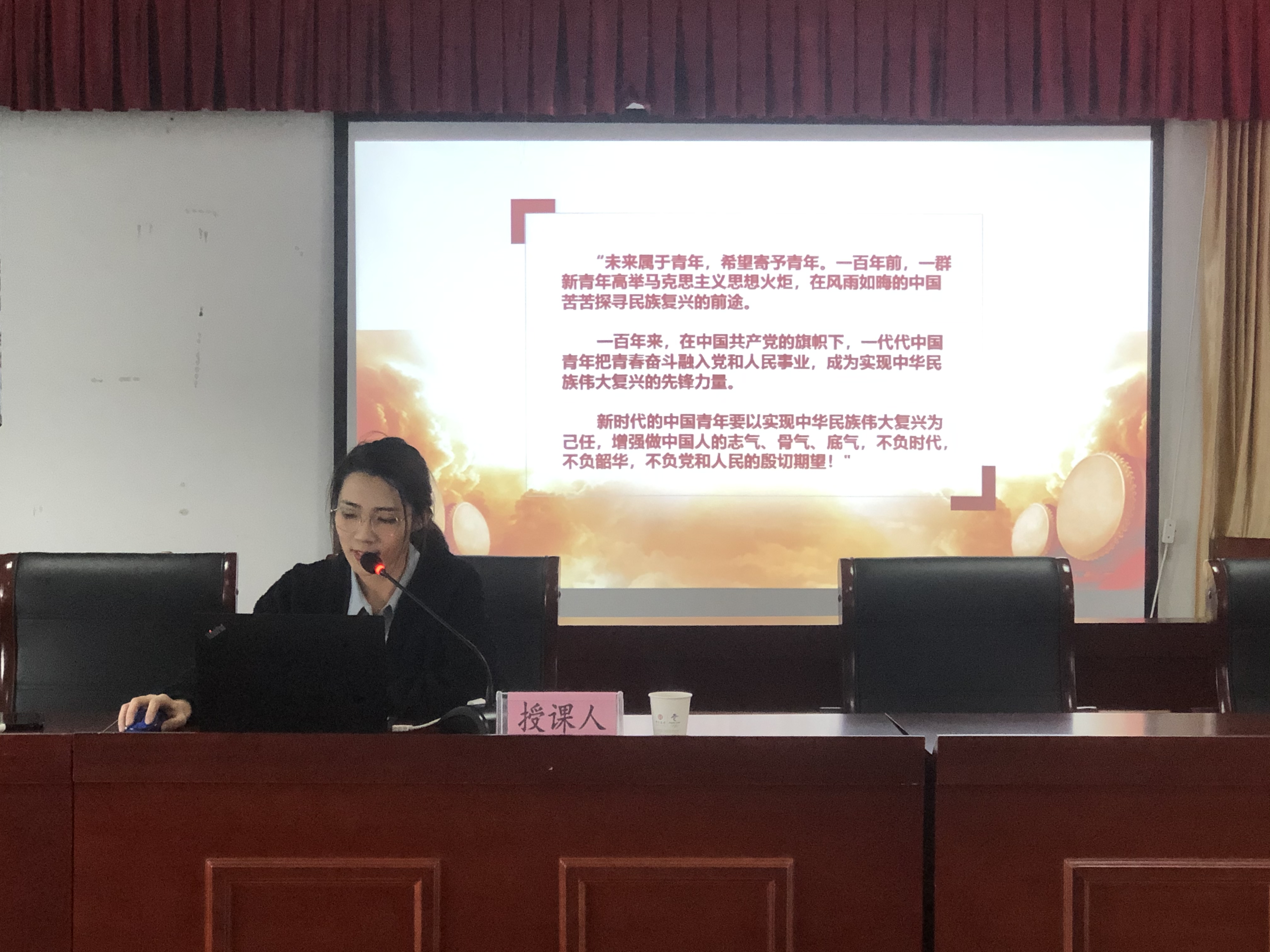 本次宣講以“百年恰是風(fēng)華正茂”為主題,圍繞習(xí)近平總書(shū)記在慶祝中國(guó)共產(chǎn)黨成立100周年大會(huì)上,對(duì)青年一代的充分肯定、殷切勉勵(lì)、深情寄語(yǔ),從“不負(fù)時(shí)代,初心不改擔(dān)使命;不負(fù)韶華,心有所信方行遠(yuǎn);不負(fù)黨和人民的殷切期望,奮斗不止譜新篇”三個(gè)方面進(jìn)行深刻闡述。宣講會(huì)上,王迪通過(guò)視頻追尋革命先輩的光輝足跡。百年崢嶸歲月,眾多先輩不求顯達(dá)于世、不求暫得于己,不惜為了理想信念拋頭顱、灑熱血,用青春和生命書(shū)寫(xiě)史詩(shī)。革命先輩們的事跡激勵(lì)我們,生逢盛世,作為新時(shí)代青年一代,要勇?lián)鷼v史使命,堅(jiān)定前進(jìn)信心,努力成為堪當(dāng)民族復(fù)興重任的時(shí)代新人!