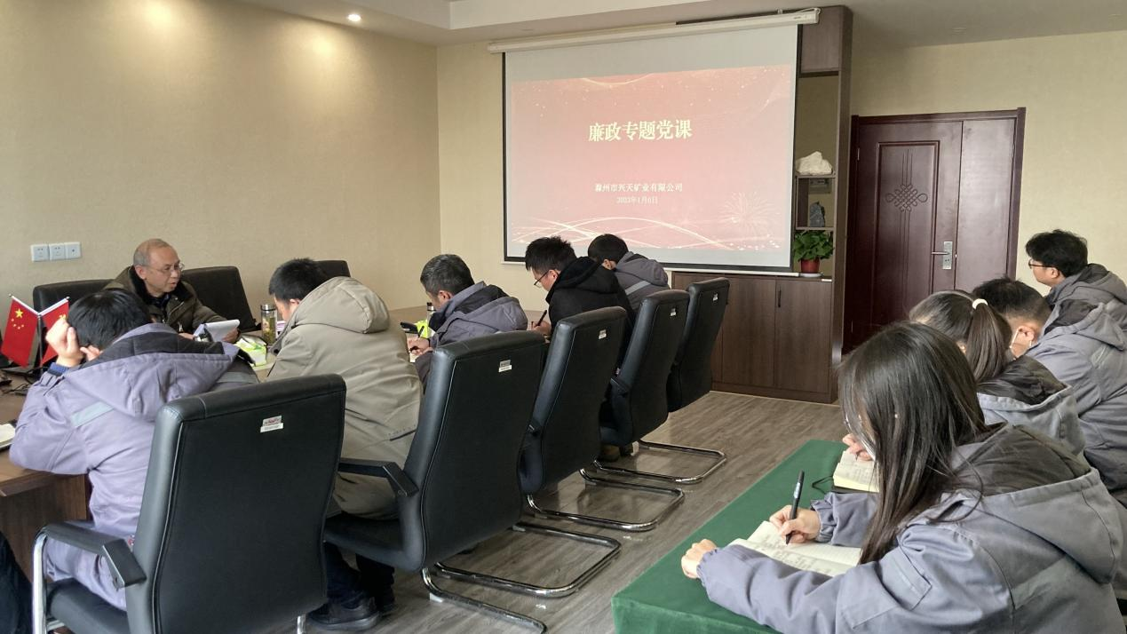 為進(jìn)一步強(qiáng)化黨風(fēng)廉政建設(shè),打好拒腐防變“預(yù)防針”,1月6日,市礦投集團(tuán)黨委委員、駐市礦投集團(tuán)紀(jì)檢監(jiān)察組組長芮金保赴興天礦業(yè),召開廉政教育專題講座,興天礦業(yè)黨支部書記肖波及公司全體干部職工參加。