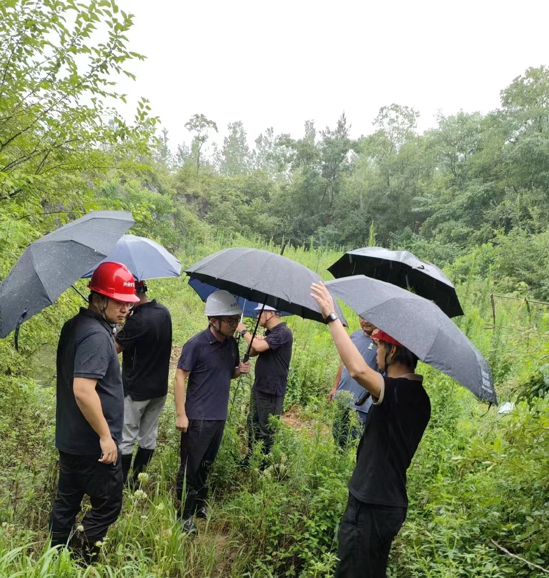 搶險現(xiàn)場,黨員干部帶頭,通過沙包筑堤、開挖排水溝等措施進行預(yù)防,同時對礦區(qū)、加工區(qū)開展全面隱患排查。中午,水塘漫堤隱患消除。