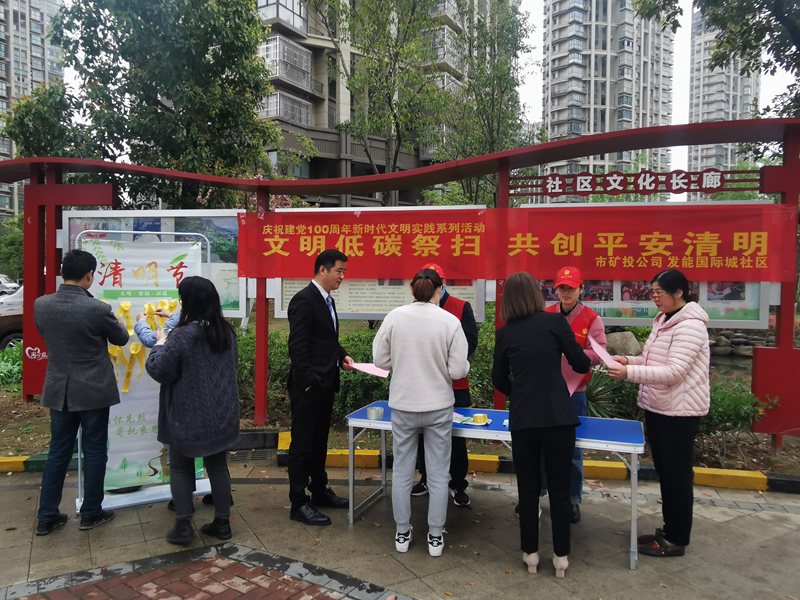 4月1日下午,市礦投公司黨員志愿者深入發(fā)能國際城社區(qū)開展宣傳活動,引導居民清明祭奠綠色出行,選擇獻花祭奠等文明、低碳的祭奠方式。