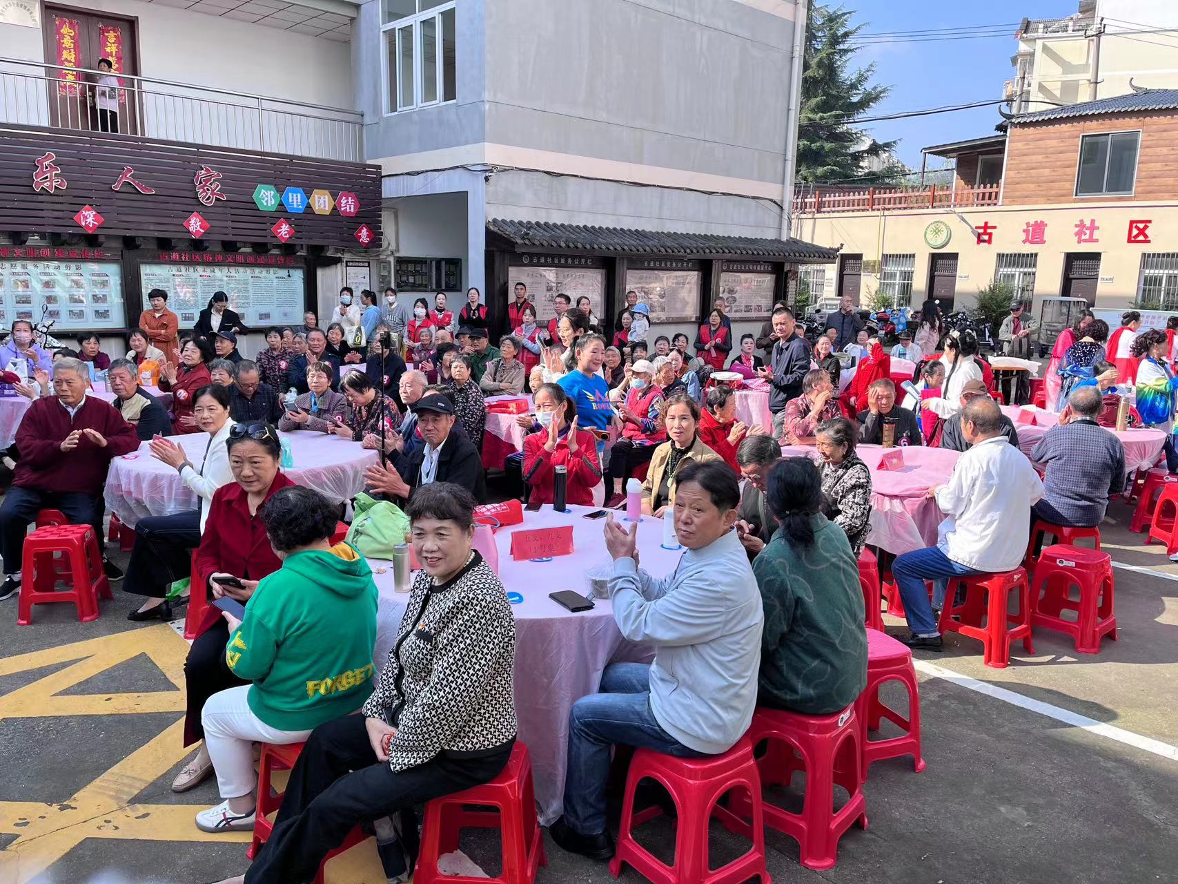 演出結(jié)束后,社區(qū)居民為老人們準(zhǔn)備了鄰里百家宴。參加活動(dòng)的居民家庭陸續(xù)端出自家拿手好菜為百家宴加餐。滁州好人、瑯琊好人、特扶家庭、高齡老人及空巢老人等服務(wù)對(duì)象均參與其中。