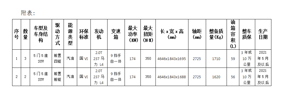 根據(jù)業(yè)務(wù)發(fā)展需要,滁州市興元商貿(mào)有限公司擬集中采購(gòu)業(yè)務(wù)保障車輛共計(jì)5輛,詳情見附表。