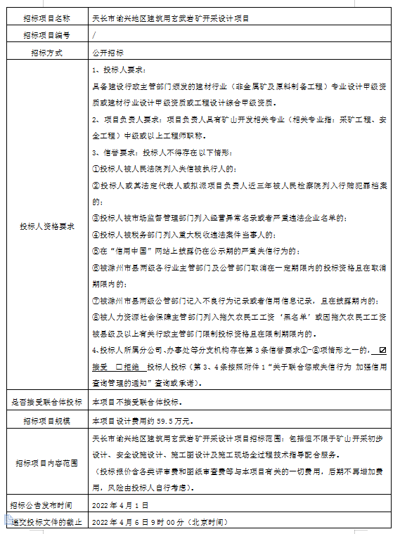 天長(zhǎng)市諭興地區(qū)建筑用玄武巖礦開采設(shè)計(jì)項(xiàng)目招標(biāo)公告