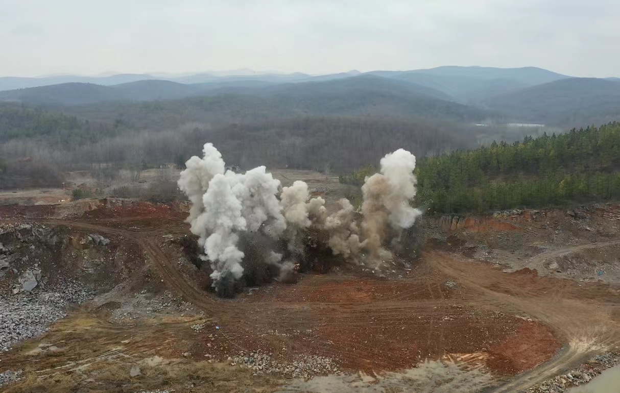 “3、2、1,起爆!”,2月18日(農(nóng)歷正月十八)上午11時58分,伴隨“砰”的一聲巨響,安徽省全椒縣馬塘湖整合礦區(qū)建筑石料用灰?guī)r礦900萬t/a露天采礦工程順利完成首次爆破。