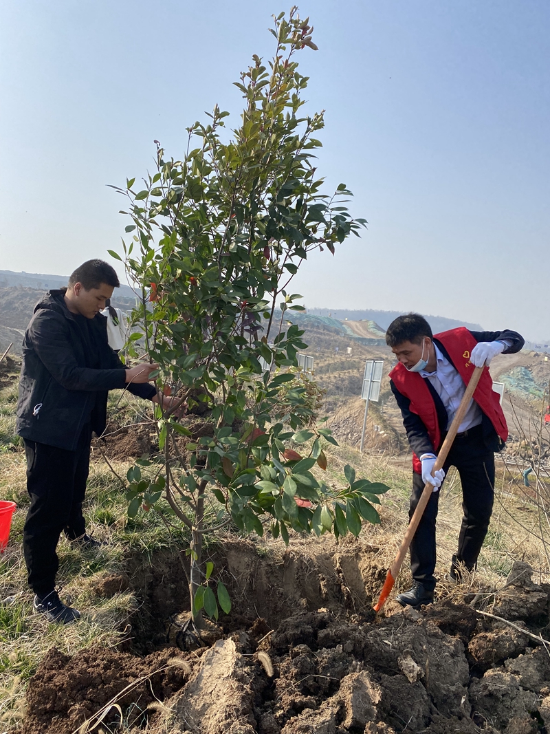 在巢東礦區(qū)植樹點(diǎn),公司職工揮锨鏟土、挖坑放苗、培土踩實(shí)、提水澆苗。所有人員熱情高漲,團(tuán)結(jié)合作,干勁十足,認(rèn)真細(xì)致、一絲不茍,整個(gè)勞動(dòng)場面繁忙有序。在大家的共同努力下,新植的樹苗屹立在了春風(fēng)中,原本空曠的土地變得生機(jī)勃勃。