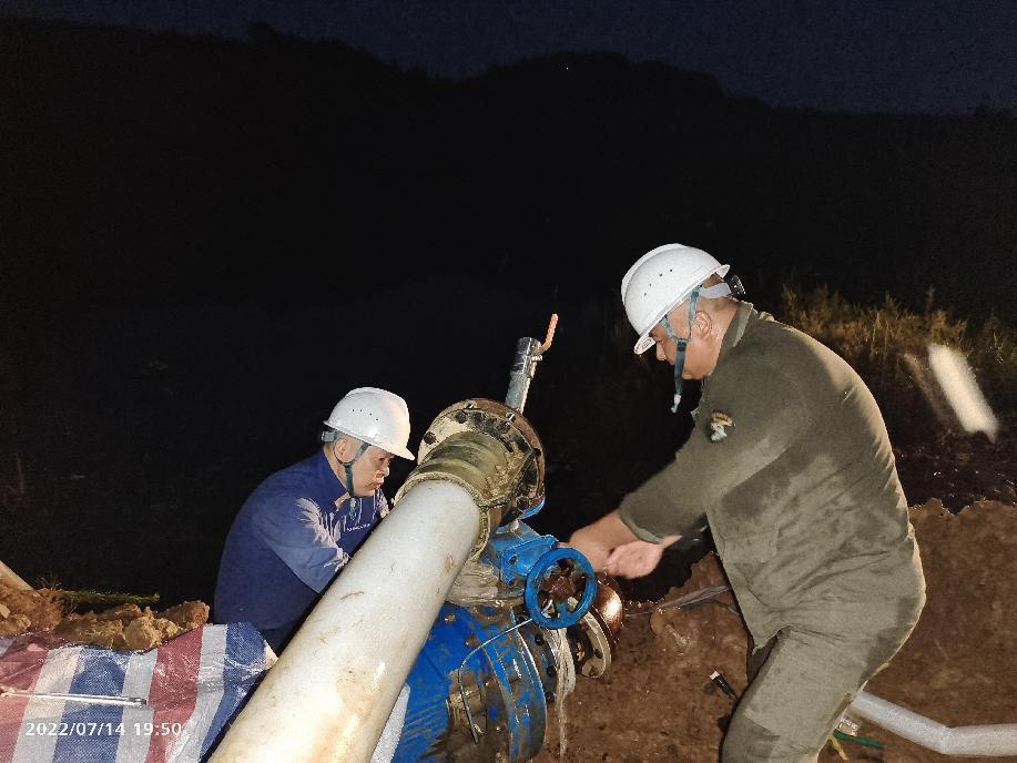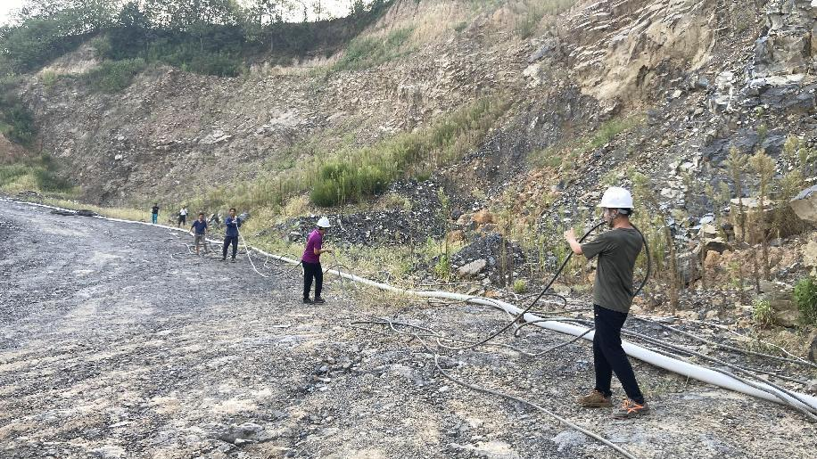 抗旱方案有了,可是要想把水從70米深的礦坑內(nèi)抽到地面,不但需要揚(yáng)程特別高的水泵,還需要高規(guī)格長距離的水管和電纜,還有很多配套零部件要采購。旱情就是命令,抗旱就是責(zé)任,興天礦業(yè)副總經(jīng)理趙崗牽頭落實(shí)抗旱物資采購,親自指揮設(shè)備調(diào)運(yùn)安裝,帶領(lǐng)公司抗旱突擊隊(duì)和社區(qū)干部深入礦坑,一起研究水泵需要多大功率安裝在什么地方、水管需要多粗從哪里下放、電纜需要多長從哪里接電等問題。方案制定好了,老百姓的水稻不能等,挖掘機(jī)第一時間進(jìn)場整理場地,興天礦業(yè)和社區(qū)準(zhǔn)備的水泵、水管電纜等也迅速到位,抗旱突擊隊(duì)與社區(qū)干部群眾一起與時間賽跑,從早到晚緊張施工,一心想著的就是早點(diǎn)把水抽上去,盡量把旱情影響降到最低。