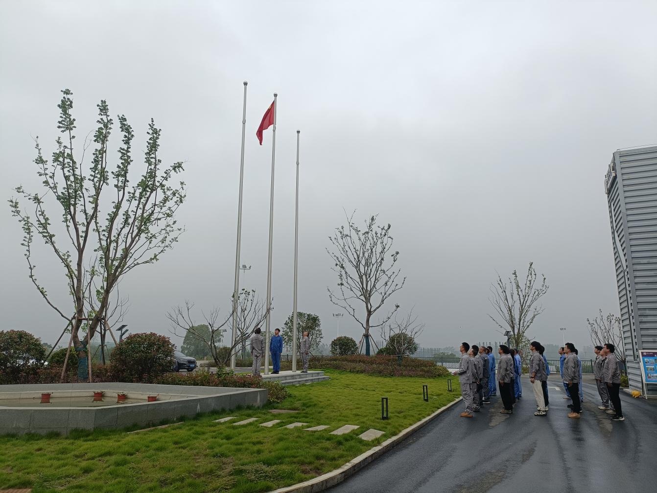 上午8時10分,升旗儀式正式開始。全體人員精神飽滿,列隊整齊,懷著無比崇敬的心情,莊嚴(yán)肅立。伴隨著雄壯嘹亮的國歌,五星紅旗冉冉升起,現(xiàn)場成員帶著對偉大祖國的崇高敬意行注目禮。
