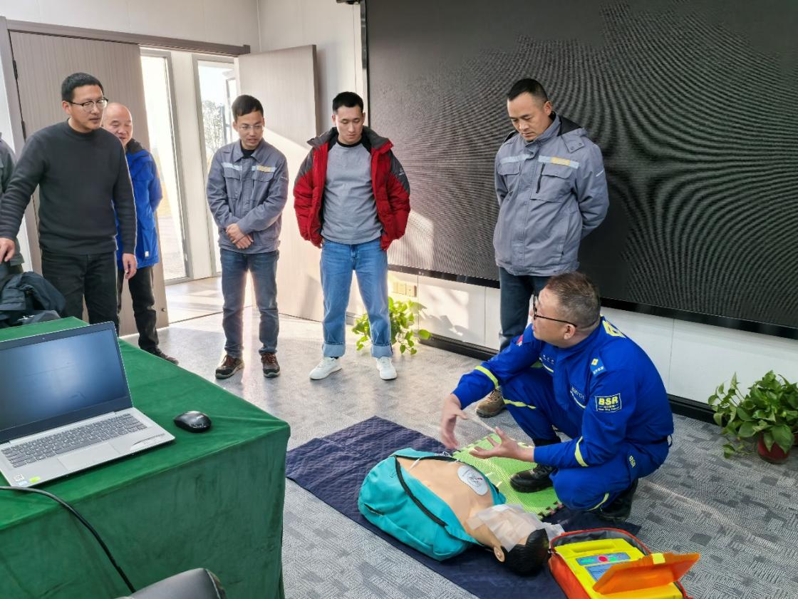 培訓(xùn)過(guò)程中,藍(lán)天救援隊(duì)講師們?cè)敿?xì)講解了心肺復(fù)蘇(CPR)、海姆立克急救法、自動(dòng)體外除顫器(AED)使用方法以及沖鋒舟使用等實(shí)用操作。興天礦業(yè)職工們積極參與,并在講師的指導(dǎo)下進(jìn)行了實(shí)踐操作。