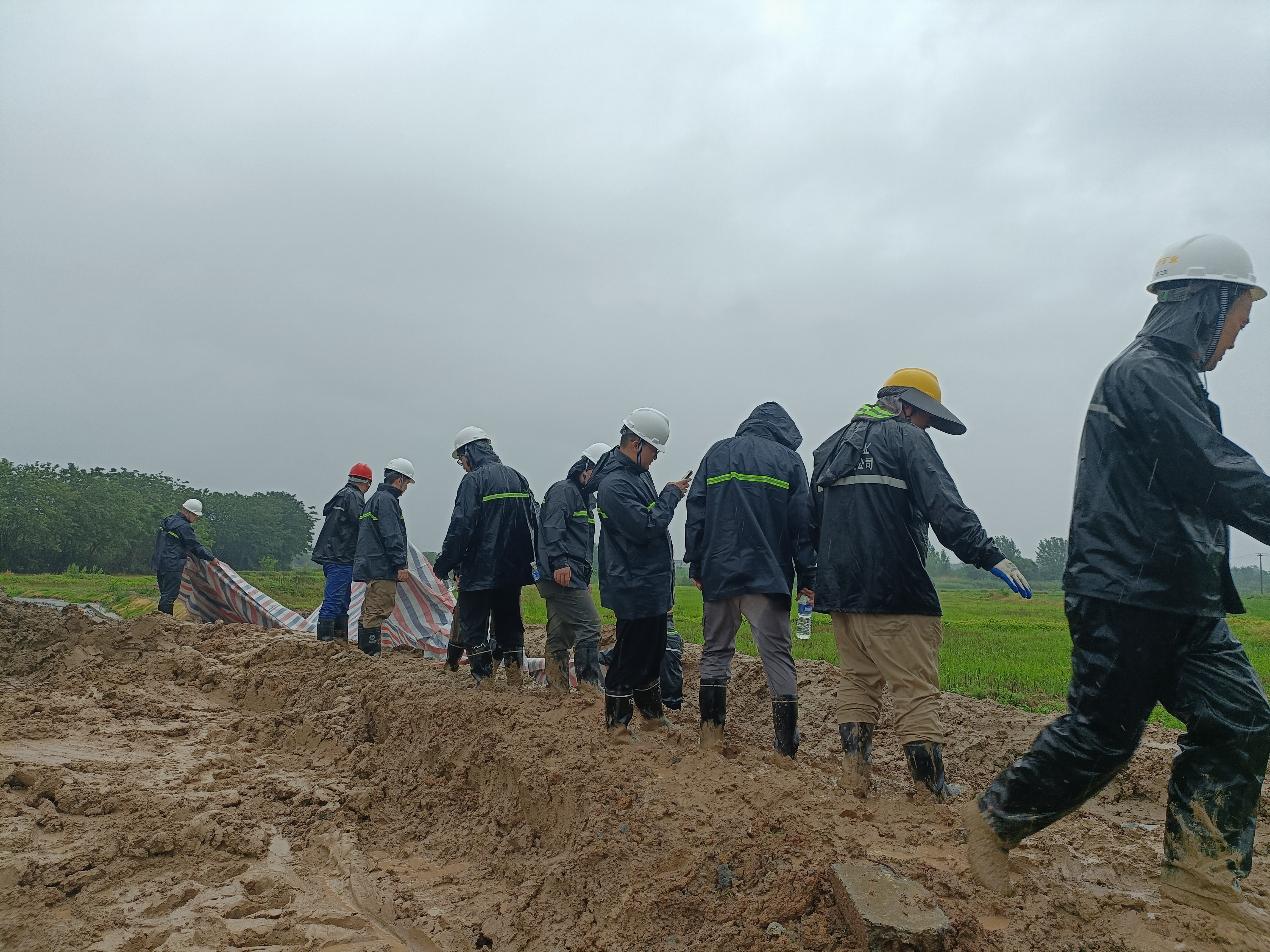 搶險現(xiàn)場,黨員干部帶頭扛起沙袋,跳入泥水中加固堤壩。由于河道水位上漲較快,突擊隊(duì)員手持鐵鍬開挖臨時導(dǎo)流渠,將洪水安全引入下游官橋水庫。晝夜風(fēng)雨里泥水滿身,抗洪搶險中責(zé)任在肩,沙袋和鐵鍬磨破了隊(duì)員們的雙手,卻磨不滅他們的意志,經(jīng)過兩天連續(xù)作戰(zhàn),最終成功排除險情。